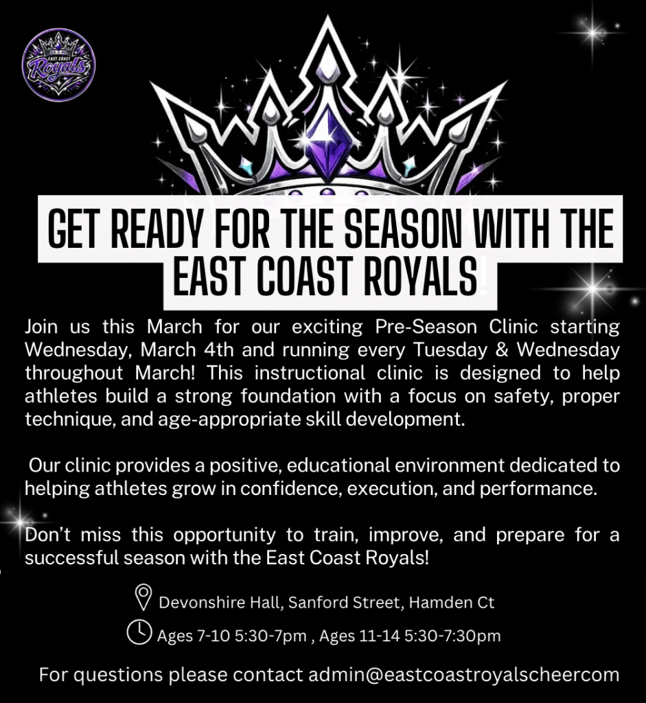 The East Coast Royals are hosting a series of spring clinics designed to keep athletes active, build essential skills, and introduce them to our coaching style before the full competition season begins.